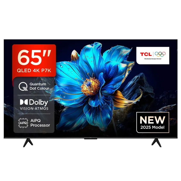 تلفزيون TCL 65P7K ذكي 65 بوصة بدقة 4K مع Google TV وDolby Vision يوفر صورة مذهلة وتجربة مشاهدة ذكية — مواصفات قوية وقيمة ممتازة بسعر منافس.